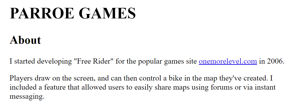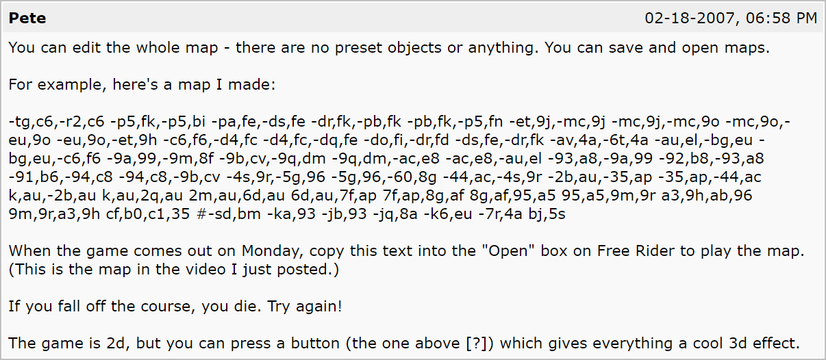 in 2006, Pete Shadbolt (of Parroe Games) begins work on the original Free Rider.